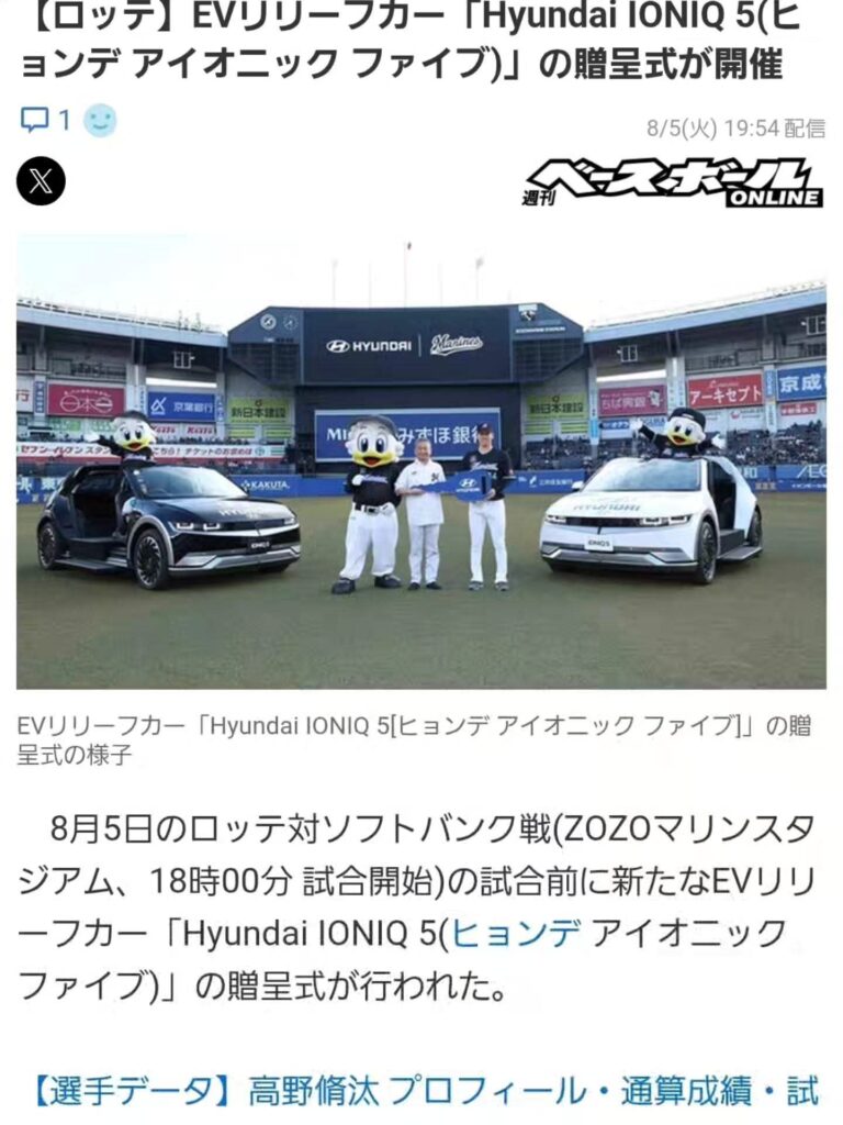 今年から車両提供はメルセデスベンツ「AMG SL43」からヒョンデ「IONIQ5」に変わり、七五三木社長のご厚意で贈呈式にも参加させて頂きました。