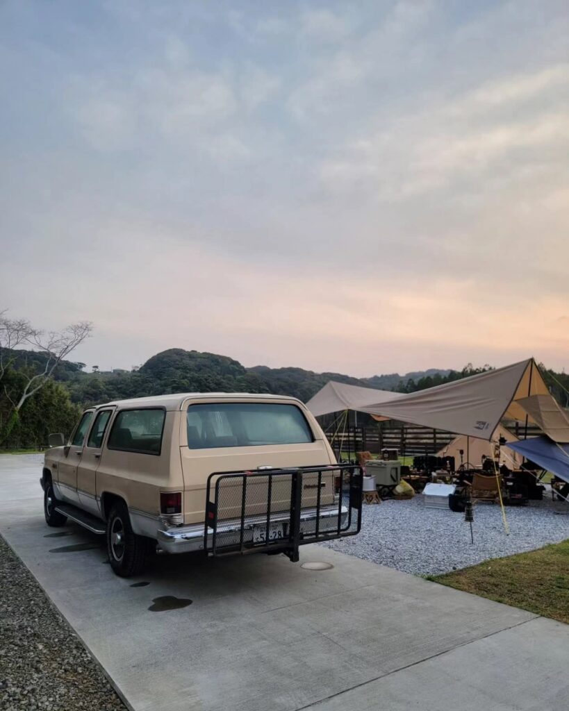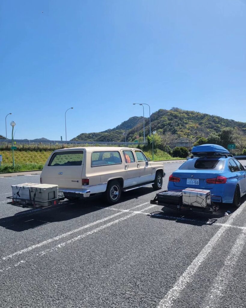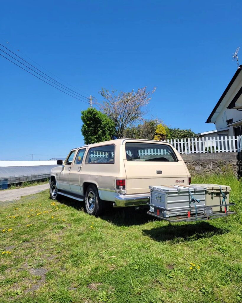 先日、試乗も兼ねて販売車両のサバーバンでスタッフさん達とキャンプに行ってきました。(*^^*) 積載量もガッツリあるからギア多めの僕にはピッタリ。三角窓から入ってくる春の風とV8ドロドロサウンドが相まって心地良かった。(^ー^)