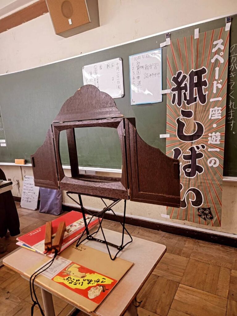 大声張り上げ、みんなと一緒に全力エンタメ紙芝居。